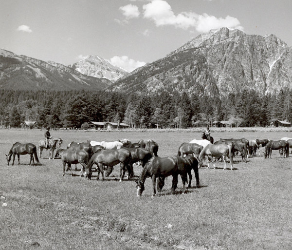 Animal mounts hung for decades at White Grass in the Main Cabin dining room until the ranch closed in 1985. This moose mount was purchased at the ranch auction in 1985 by John Mortensen, a Jackson local. According to Mortensen, this moose mount, and others original to the ranch, were created by original owner/operator Harold Hammond, who possessed taxidermy skills. Hammond died in 1939, leaving the ranch to his stepson, Frank Galey. John and Pam Mortensen, who previously worked at White Grass, gifted the mount back to White Grass in 2017.
