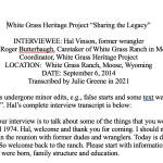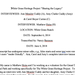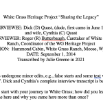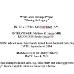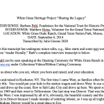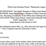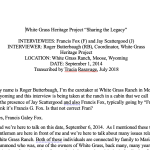The White Grass Heritage Project has captured over 70 hours of oral histories. These oral histories have been captured in film and/or audio formats and some have been transcribed and made accessible here. Only a sampling of the oral histories collected are presented in the section below.