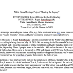 Barb Pahl has had a 30+ year career working for the National Trust for Historic Preservation. Barb talks extensively about the history of the preservation movement with detailed references to Congress and government programs; translating Secretary of Interior preservation standards into field work with the National Park Service; developing cooperative relationships; and the evolution of being a preservation professional across 3 decades. Her efforts, along with many others, forged a partnership between the Trust, donors, community leaders and the NPS to turn White Grass into a national center for teaching historic preservation skills. Through the Trust, she helped raise close to one million dollars toward the rehabilitation of White Grass Ranch. “I hope the lesson that White Grass will provide is that the greenest building is one that is already built (and) the best way to save something (like a building) is to use it… There is no better place to share stories than where they happened.”